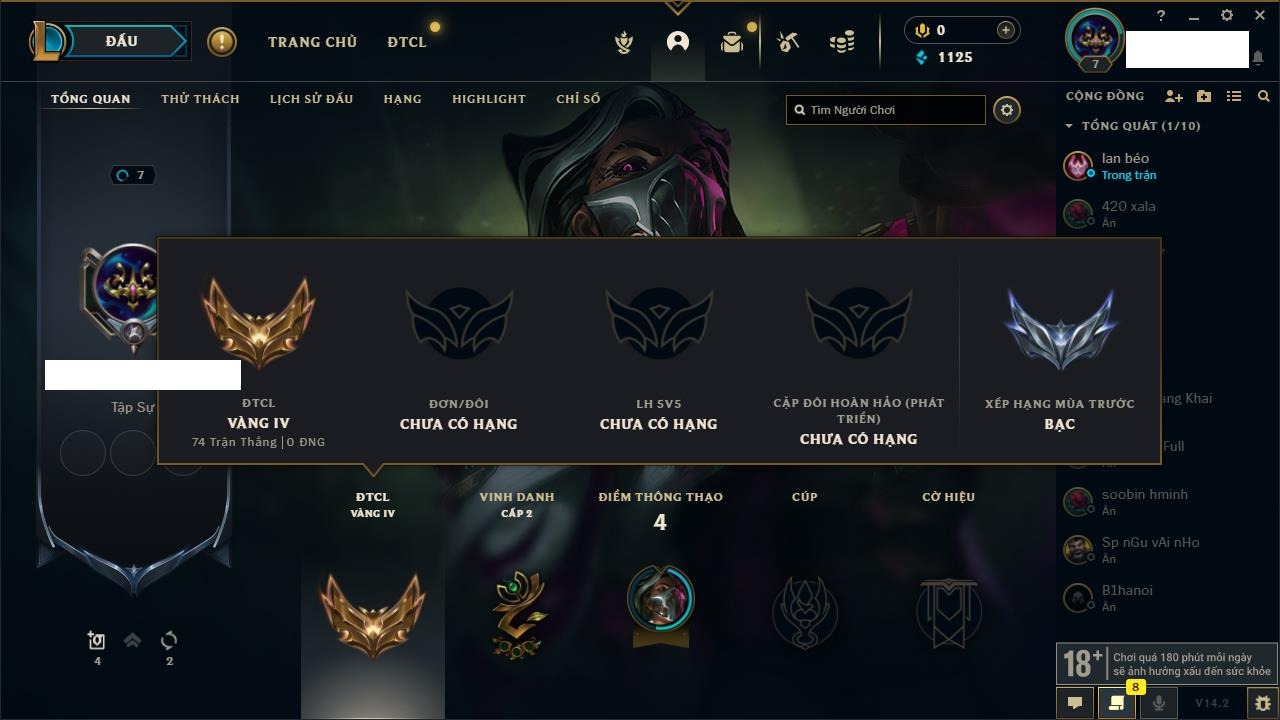 Rank ĐTCL: Bạch Kim IV